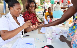 Improving diabetes treatment also involves education and free blood glucose tests, like this one being conducted in Bikita, Zimbabwe.