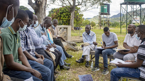 Kuda Madzeke (2nd right) and his team talking to patients at Chikuku Hospital.