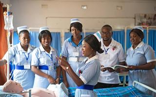 Third year nursing students practising techniques in the Skills Lab at St. Luke's College of Nursing in Mpanshya, Zambia. Photo by Gareth Bentley