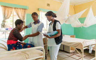 Pflegefachschülerin bei der Betreuung einer Patientin unter Aufsicht der klinischen Ausbildnerin im St. Luke's Missionsspital. Foto: Gareth Bentley