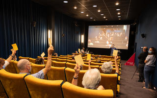 Die Mitglieder bei der Abstimmung im Kinosaal (M.R.)