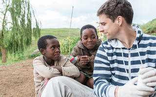 SolidarMed-Präsident Niklaus Labhardt im Gespräch mit Kindern in Lesotho.