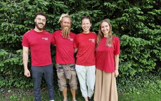Toni, Sebastian, Jessica und Christina sind für SolidarMed in Bern und Umgebung unterwegs.