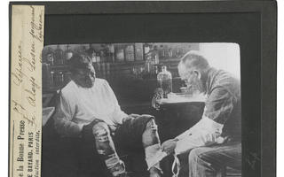 Glasdia aus dem SolidarMed-Archiv. Behandlungssituation im Sprechzimmer. Aufnahmedatum unbekannt.